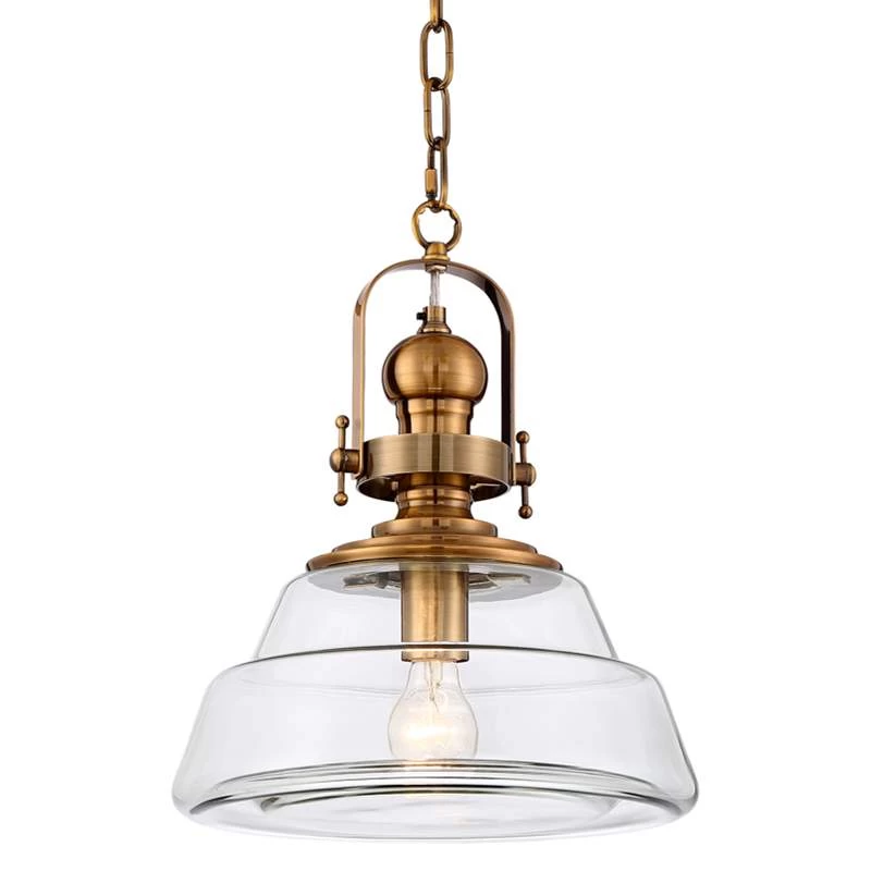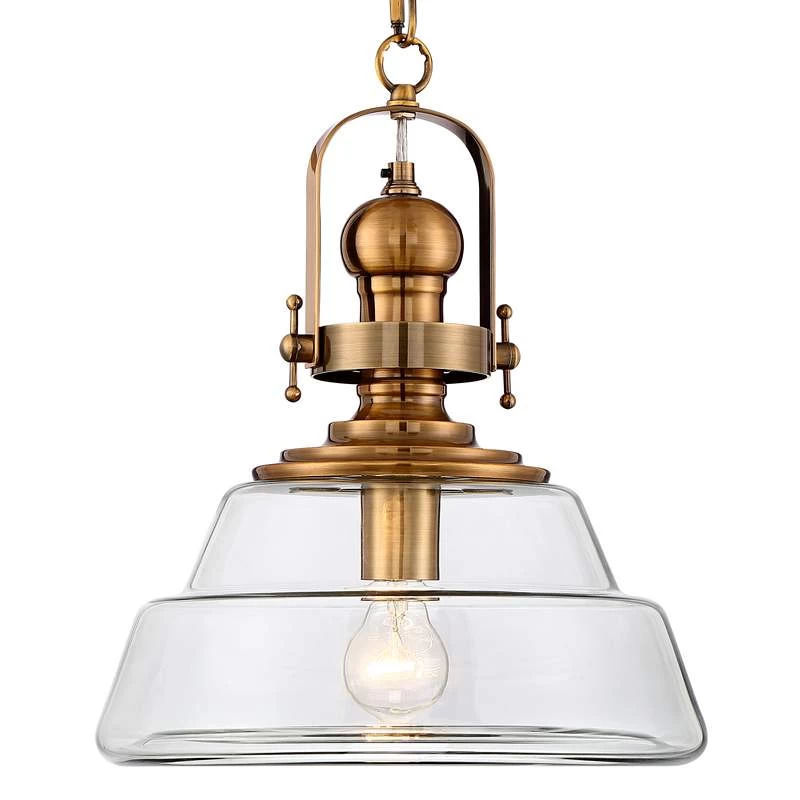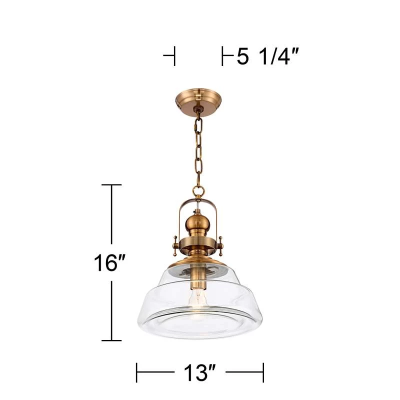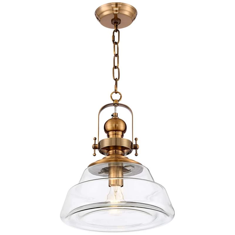 Donovan 13″ Wide Antique Brass And Clear Glass Pendant Light