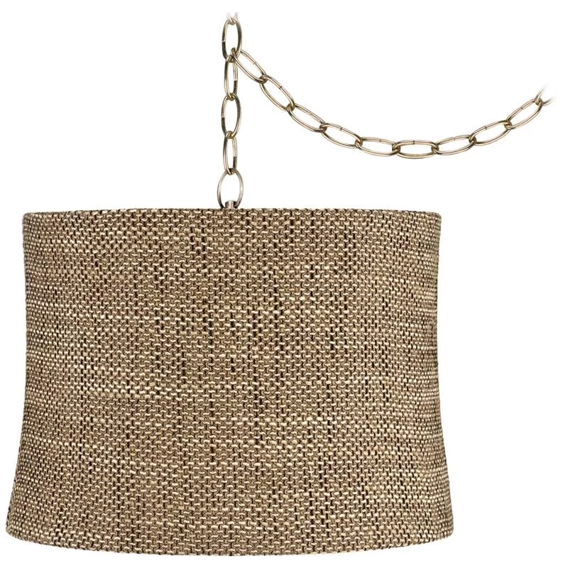 Dortmund 14″ Wide Antique Brass Plug-In Swag Chandelier