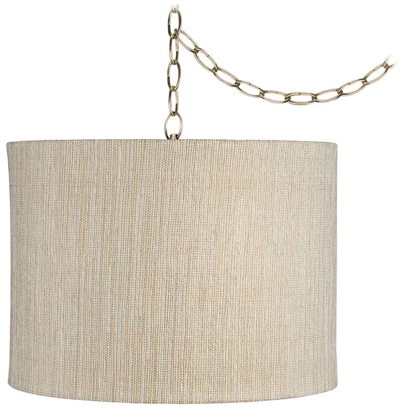 Gold And Silver 15″ Wide Antique Brass Plug-In Swag Chandelier
