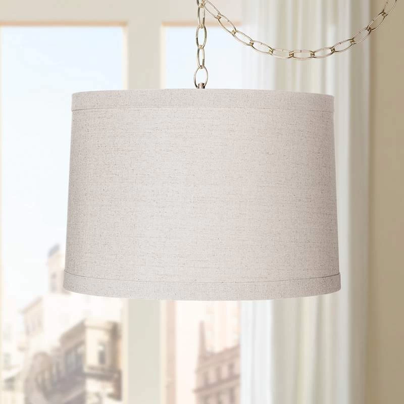 Linen Drum 16″ Wide Antique Brass Plug-In Swag Chandelier