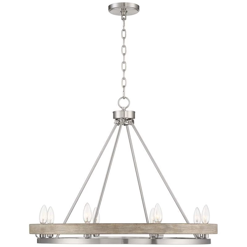 Lora 29 1/4″ Wide Nickel And Gray Wood Finish 8-Light Ring Chandelier