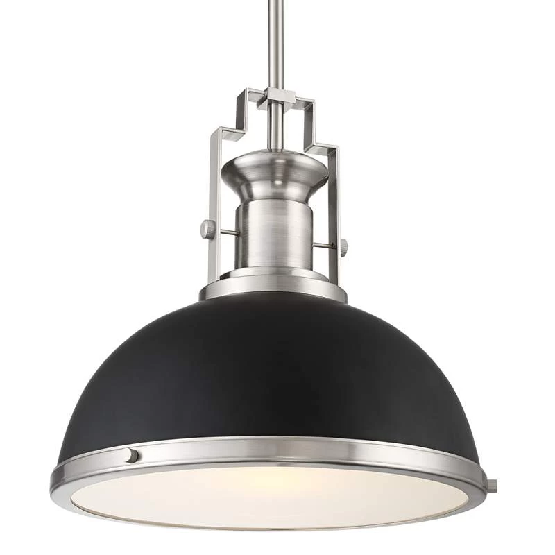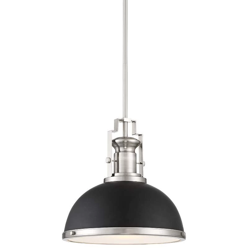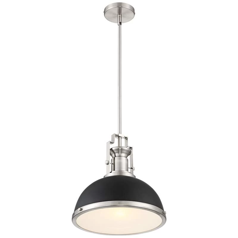 Posey 13″ Wide Black And Brushed Nickel Dome Pendant Light
