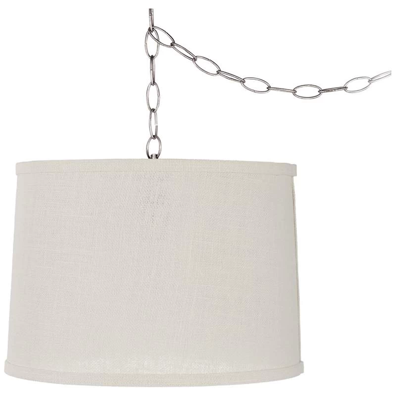 Possini Euro 14″ Wide Nickel And Cream Burlap Plug-In Swag Chandelier