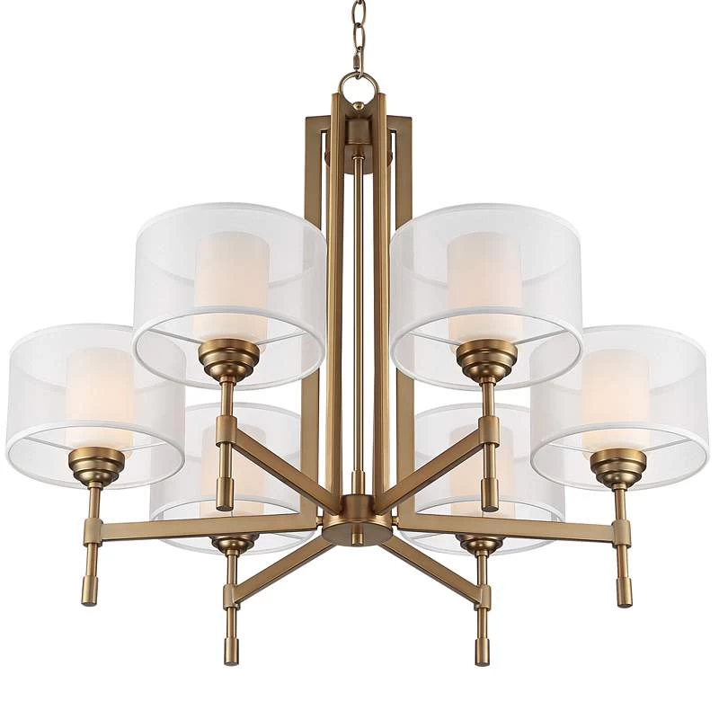 Possini Euro Beauchamp 32″ Wide Gold Double Shade 6-Light Chandelier