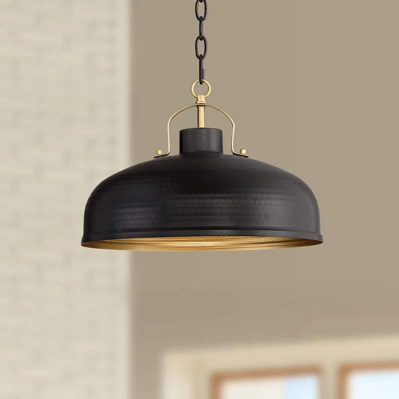 Possini Euro Camden 15 3/4″ Wide Black And Warm Brass Ceiling Pendant