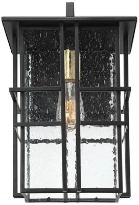 Enhance the curb appeal of any outdoor design with this modern outdoor wall light. A simplified geometric frame in a black finish complements the seedy glass over a single bulb. The bulb socket features a burnished brass finish for that pop of unexpected metallic color.