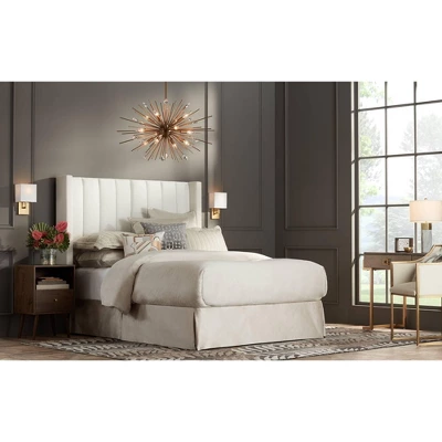 - Includes one 6″ and three 12″ downrods. 12 feet wire. Minimum hang height is 20″. Sloped ceiling adaptable.