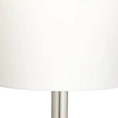 Brighten a dark room corner or add an eye-catching look to living room lighting areas with this modern design from the Possini Euro Design brand. The droplet lamp body is impressive with a brushed nickel finish and fluid Mid-Century modern lines. The striking drum shade looks crisp and clean and contributes to the vertical interest of this modern floor lamp design. A handy on-off foot switch offers easy operation and lighting control.