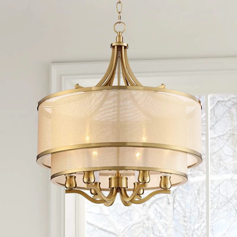 Possini Euro Nor 23″ Wide Warm Antique Brass 6-Light Pendant