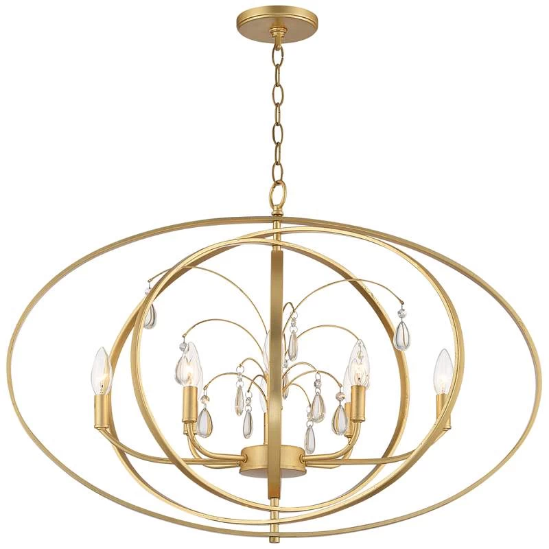 Possini Euro Tiller 32″ Wide Gold Leaf 8-Light Foyer Pendant